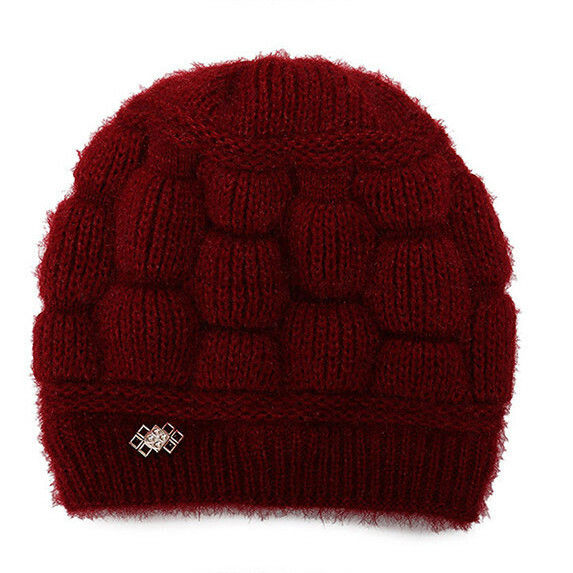熱賣中老年加厚保暖毛線帽女(紅色)