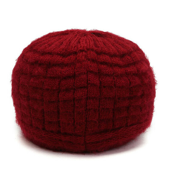 熱賣中老年加絨保暖毛線帽女(酒紅色)