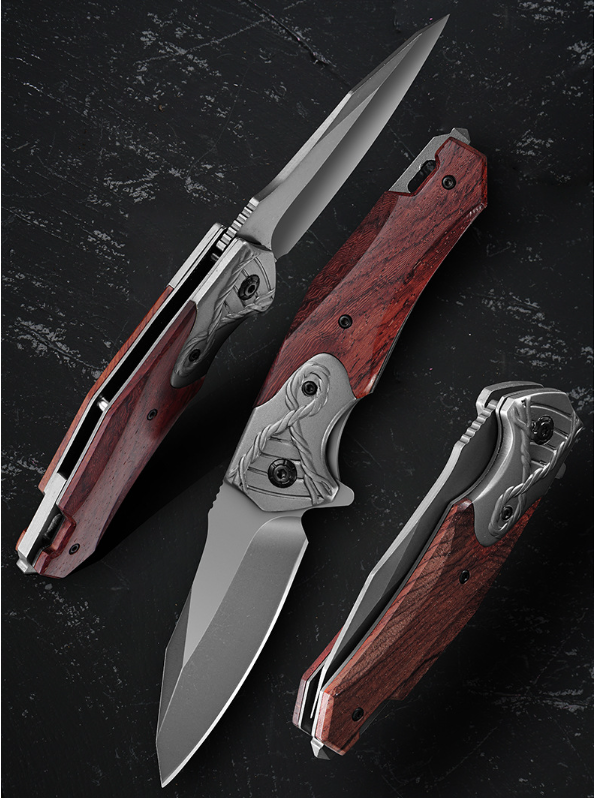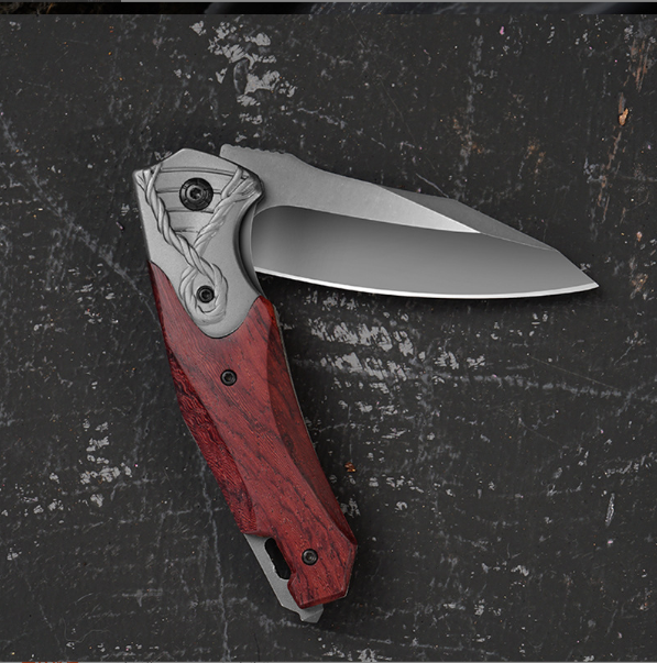 熱賣迷妳折疊刀(紅檀木手柄)(規格:全長20.3*刃長8.8*刃寬2.9*刃厚0.25CM)