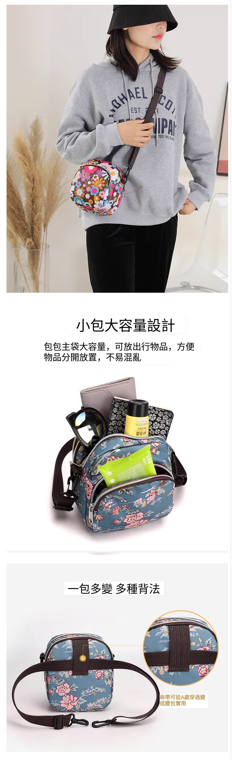 熱賣迷你手機包 斜挎超輕便攜印花小包 【薔薇花】
