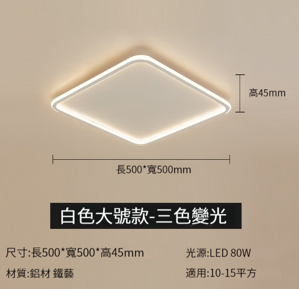 熱賣極簡超薄吸頂燈【50CM方形-典雅黑(白光)】