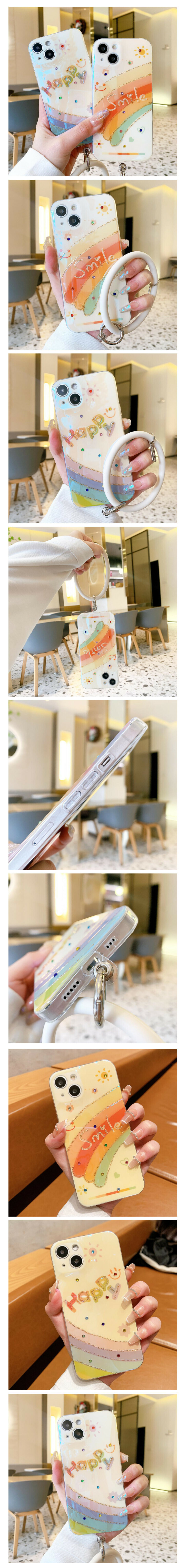 熱賣手機殼適用蘋果14promax/iPhone11/12/xs/xr【彩虹smile+手環】(下單後聯絡客服確認手機型號)