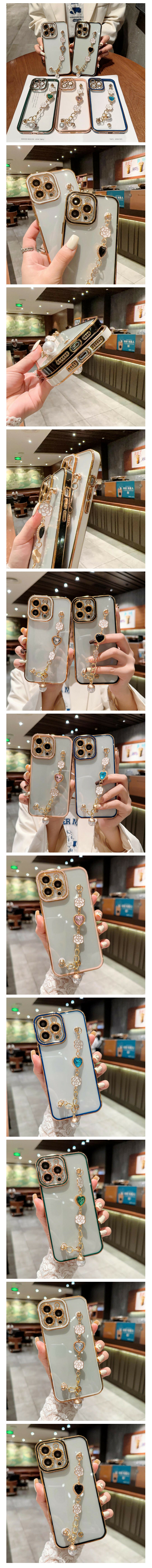 熱賣手機殼適用iPhone14Pro蘋果11/13/12【瞳眼電鍍+寶石愛心鏈-暗夜綠】(下單後聯絡客服確認手機型號)