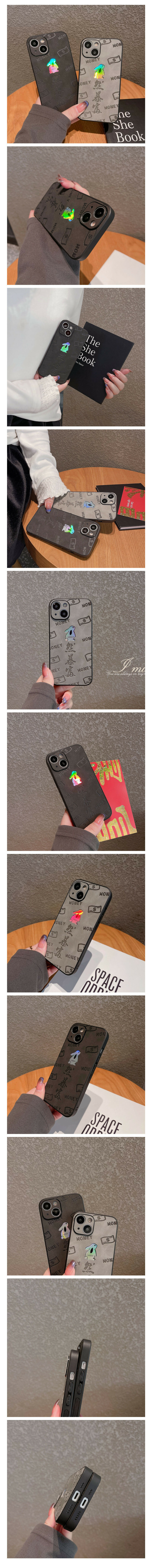 熱賣手機殼適用於iPhone14pro max蘋果13【灰底皮質 鐳射兔子兔然暴富】(下單後聯絡客服確認手機型號)
