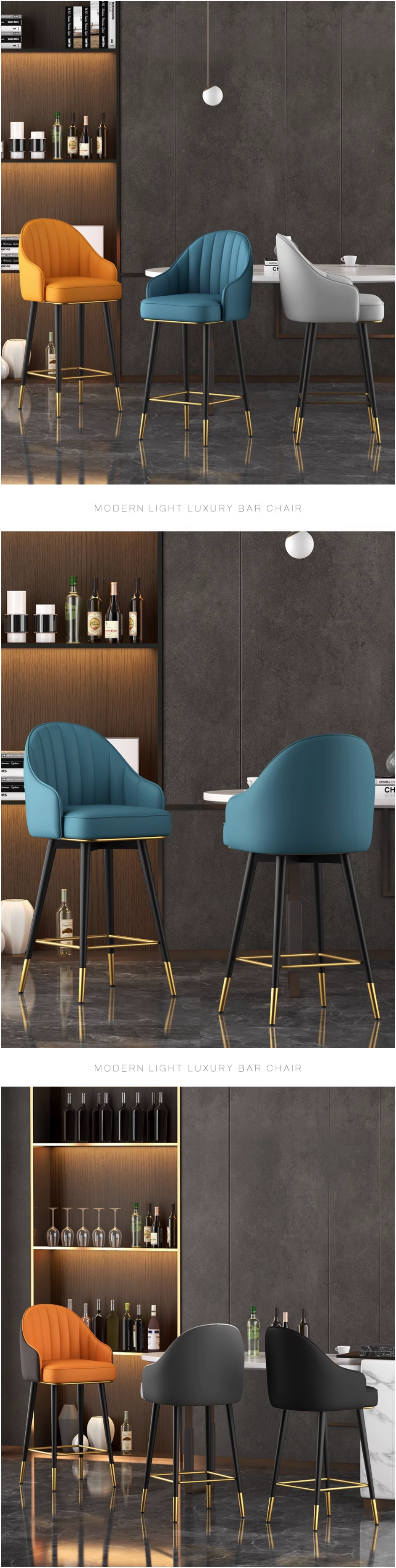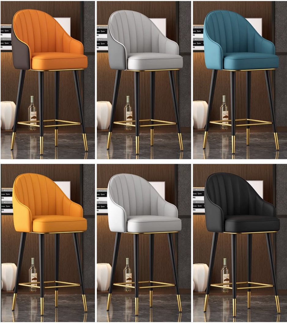 熱賣現代輕奢可旋轉吧檯椅(淺灰面深灰背)(尺寸:坐高75CM)