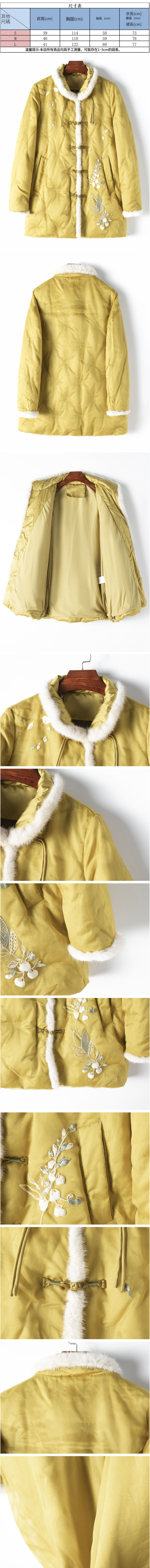 熱賣桑蠶絲面紗白鵝絨拼接水貂領羽絨外套(S-L碼)(薑黃色)(下單後聯絡客服確認發貨尺碼)