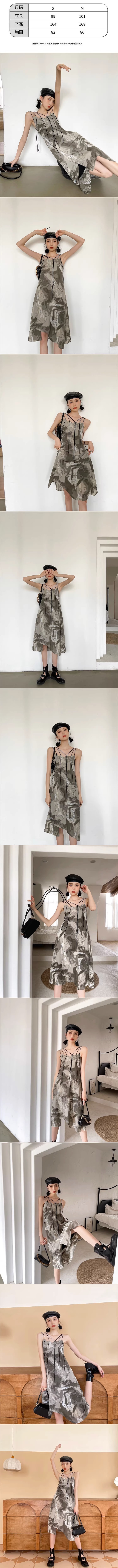 熱賣多肩帶連衣裙(灰底印花)(S/M碼)(下單後聯絡客服確認發貨尺碼)
