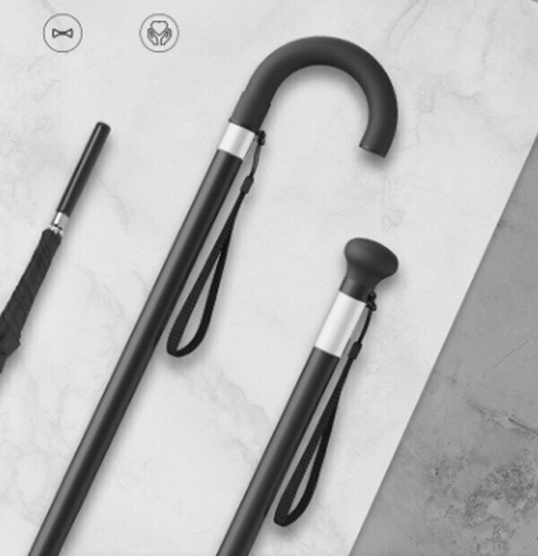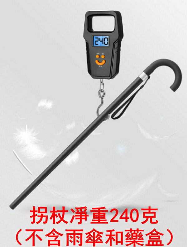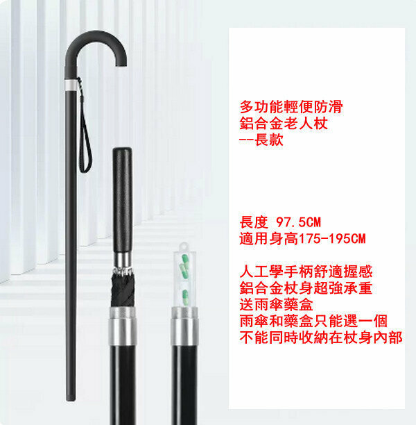 熱賣多功能鋁合金藥盒雨傘手杖--彎頭-啞光黑-長款