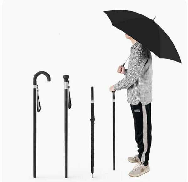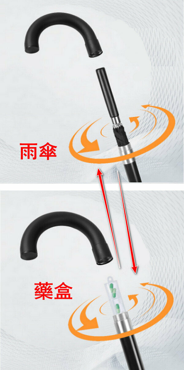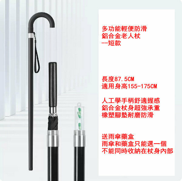 熱賣多功能鋁合金藥盒雨傘手杖--彎頭-啞光黑-短款