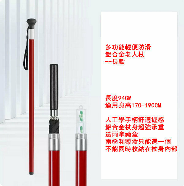 熱賣多功能鋁合金藥盒雨傘手杖--圓頭-朱紅色-長款