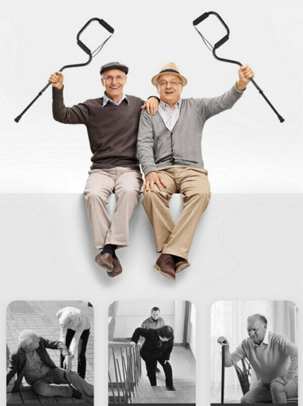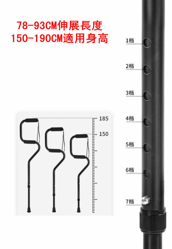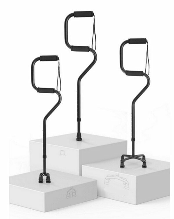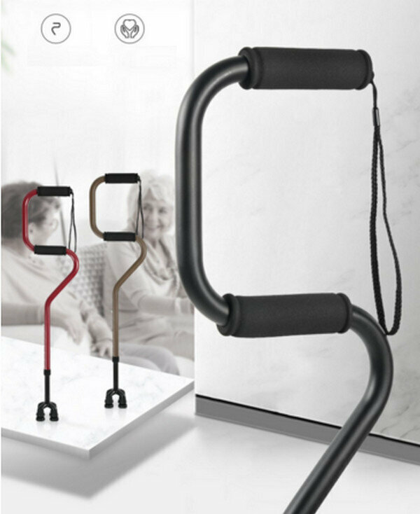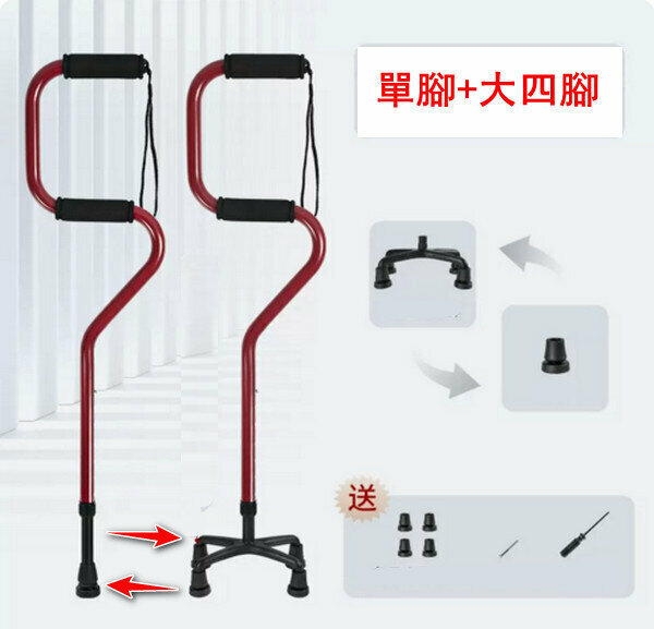 熱賣多功能鋁合金伸縮老人杖-弓形大四腳+單腳-朱紅色