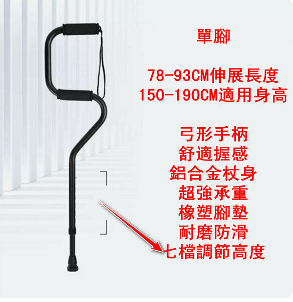熱賣多功能鋁合金伸縮老人杖-弓形單腳-啞光黑