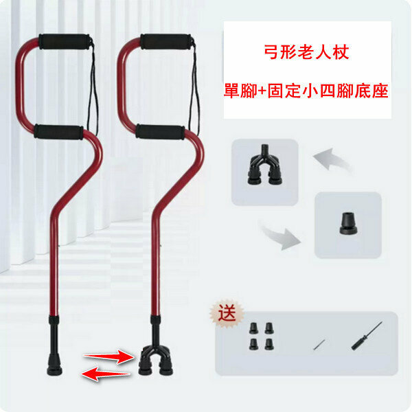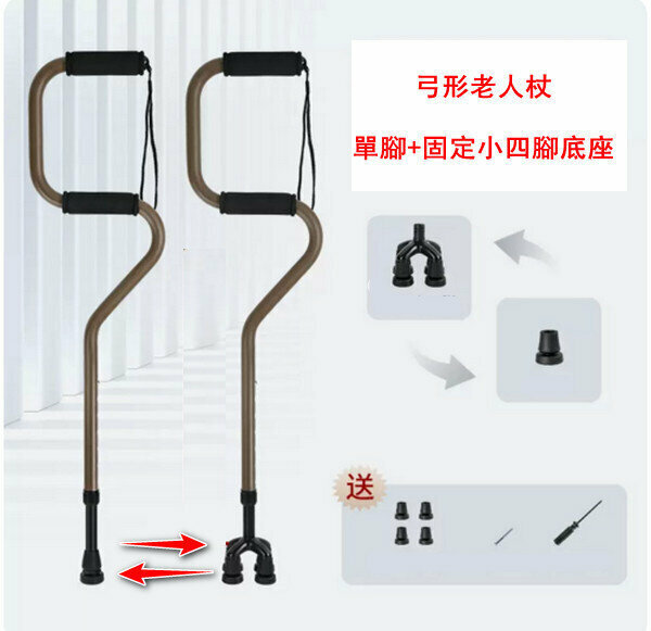 熱賣多功能鋁合金伸縮老人杖-弓形小四腳-茶褐色