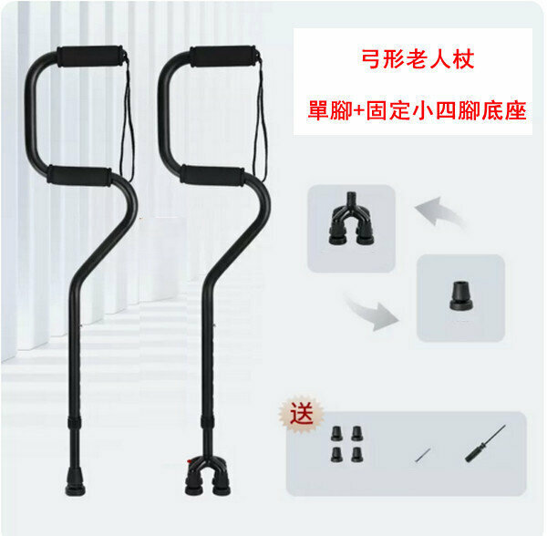 熱賣多功能鋁合金伸縮老人杖-弓形小四腳-啞光黑