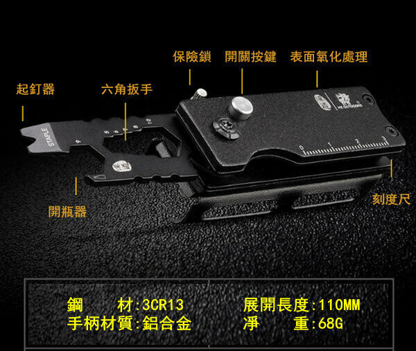 熱賣多功能鋁合金工具掛件-火機EDC工具-黑色【EDC-031A】全長110MM