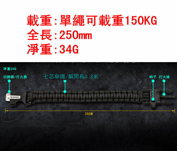 熱賣多功能蛟龍戰術求生手繩/手環/手鏈【D-101】橙色-全長250mm