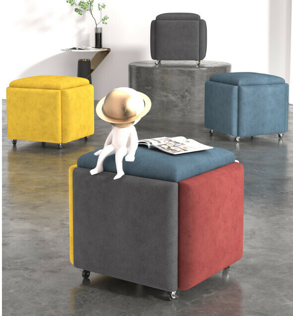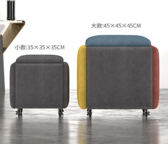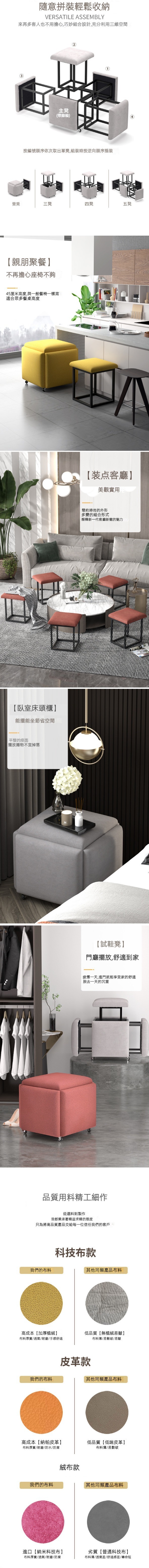 熱賣多功能五合一組合收納凳沙發凳【(科技布乳膠款)深灰色】(尺寸:35*35*35cm)