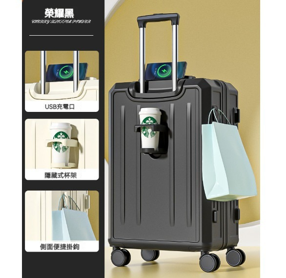 熱賣多功能行李箱【22寸】【抹茶綠【usb+杯架+前手把】】