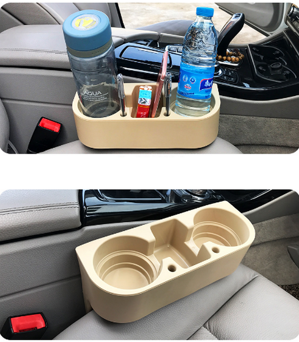 熱賣車用多功能水杯架-【米色】水杯架/置物盒