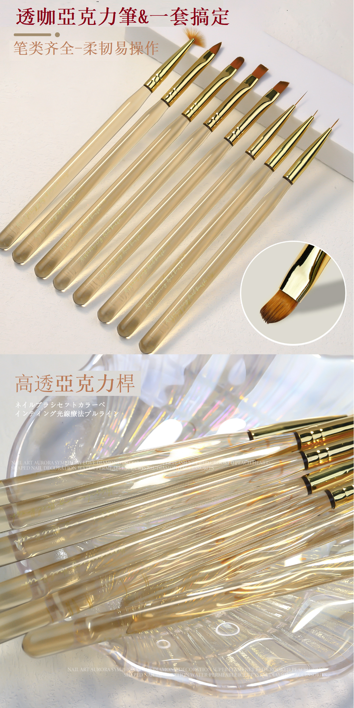 熱賣美甲筆刷 冰透茶色美甲筆01短拉線