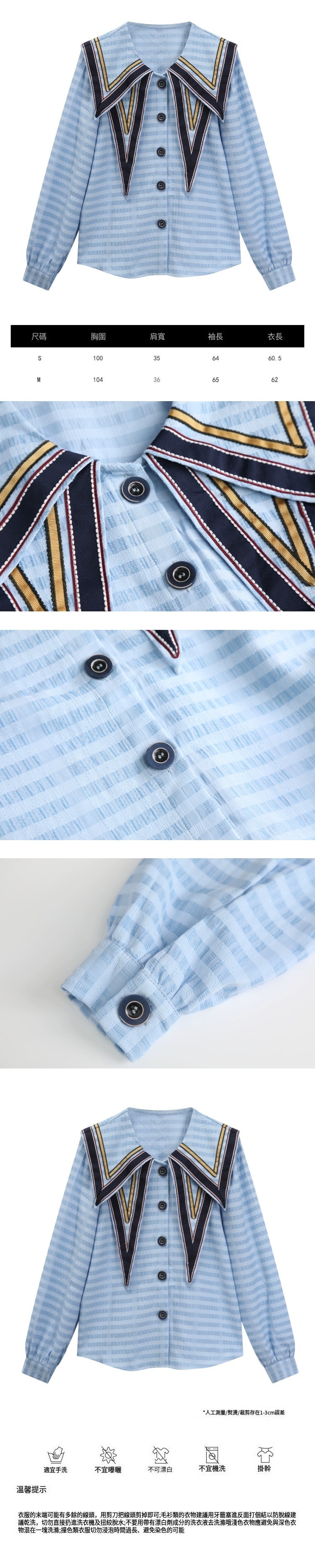 熱賣海軍領藍色格子襯衫(圖片色)(S-L碼)(下單後聯絡客服確認發貨尺碼)