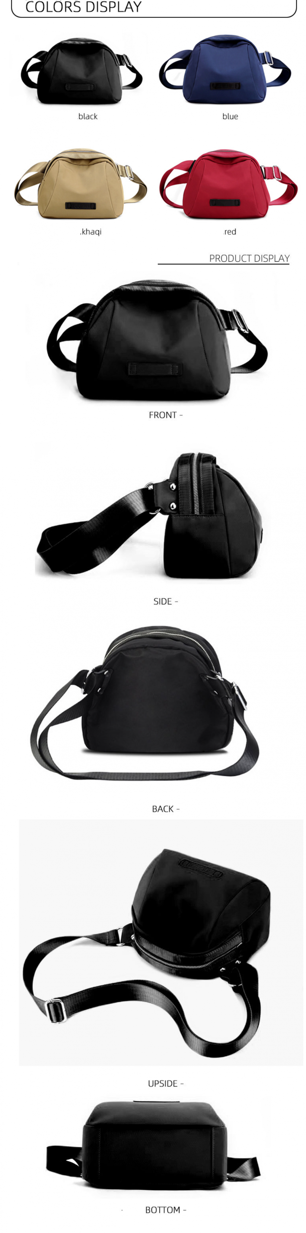 熱賣新款輕便百搭寬肩帶尼龍斜挎包(黑色長24cm*寬9.5cm*高16.5cm)