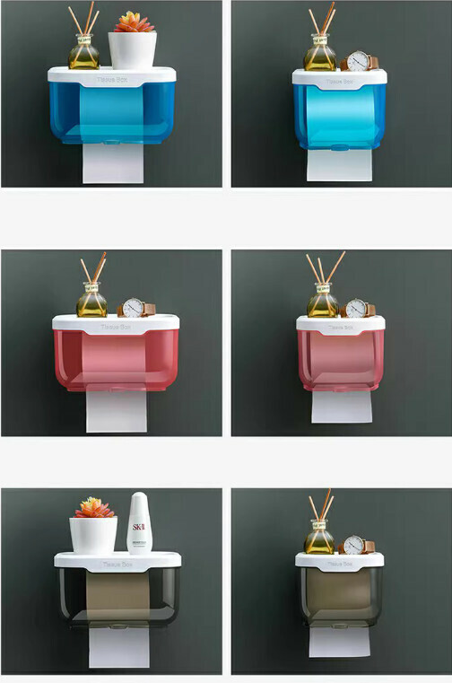 熱賣免打孔壁掛式紙巾盒(黑色-小號)(尺寸:15*15.5*12cm)