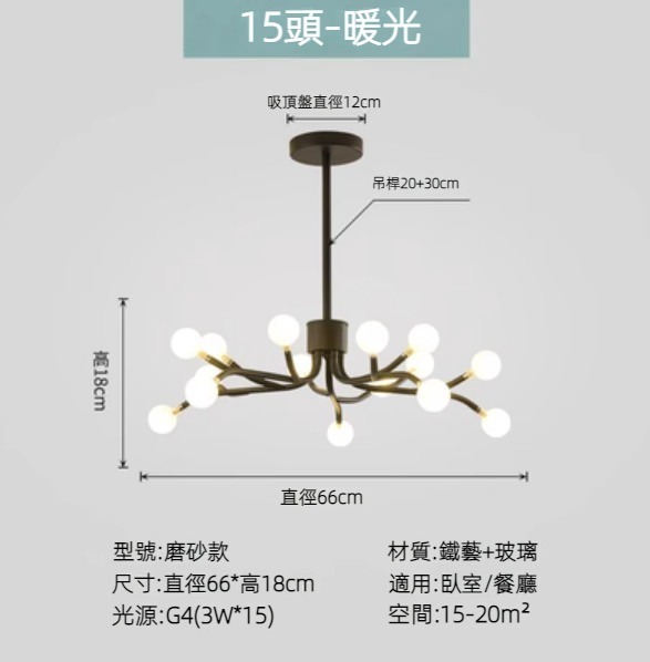 熱賣北歐簡約螢火蟲燈吊燈(黑色燈體)(磨砂款/15頭/暖光)
