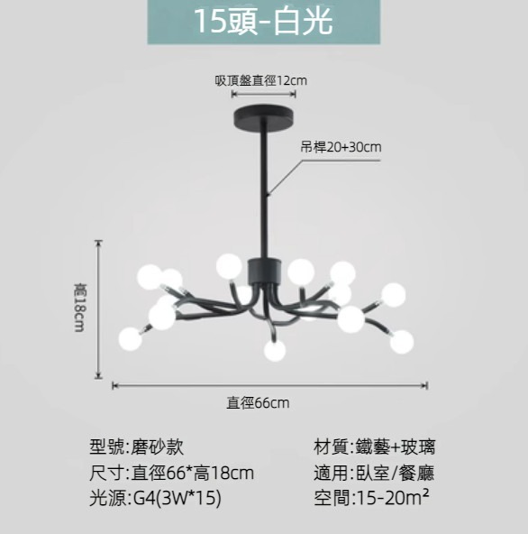 熱賣北歐簡約螢火蟲燈吊燈(黑色燈體)(磨砂款/15頭/白光)