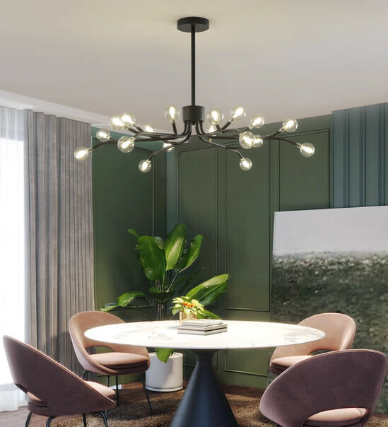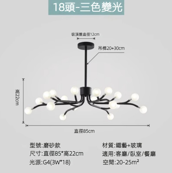 熱賣北歐簡約螢火蟲燈吊燈(黑色燈體)(磨砂款/18頭/三色變光)