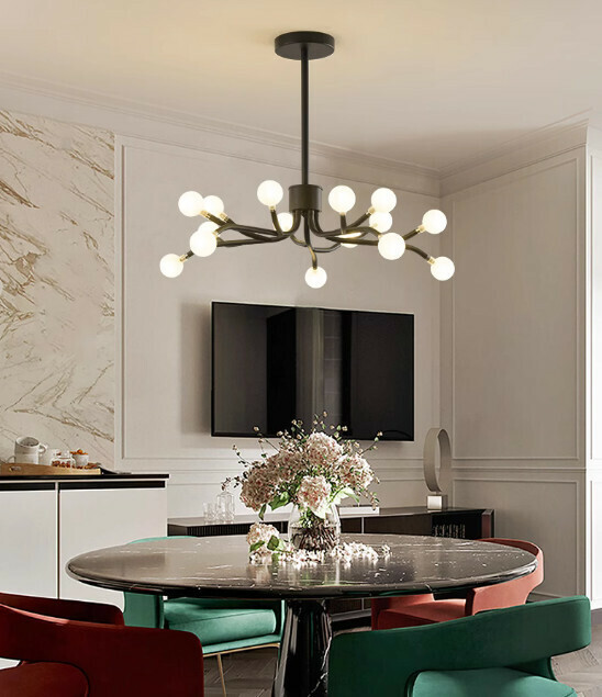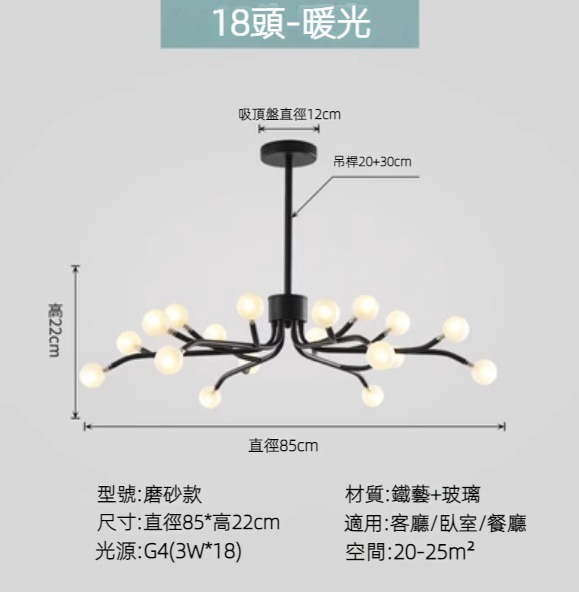 熱賣北歐簡約螢火蟲燈吊燈(黑色燈體)(磨砂款/18頭/暖光)