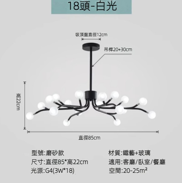 熱賣北歐簡約螢火蟲燈吊燈(黑色燈體)(磨砂款/18頭/白光)