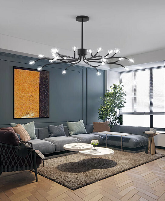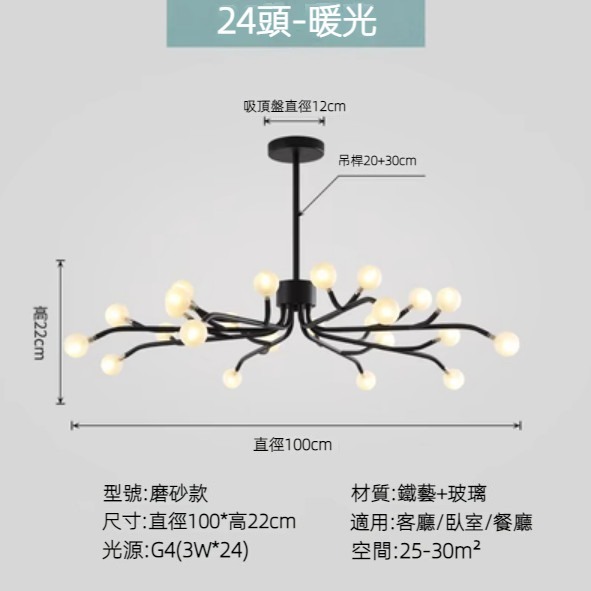 熱賣北歐簡約螢火蟲燈吊燈(黑色燈體)(磨砂款/24頭/暖光)