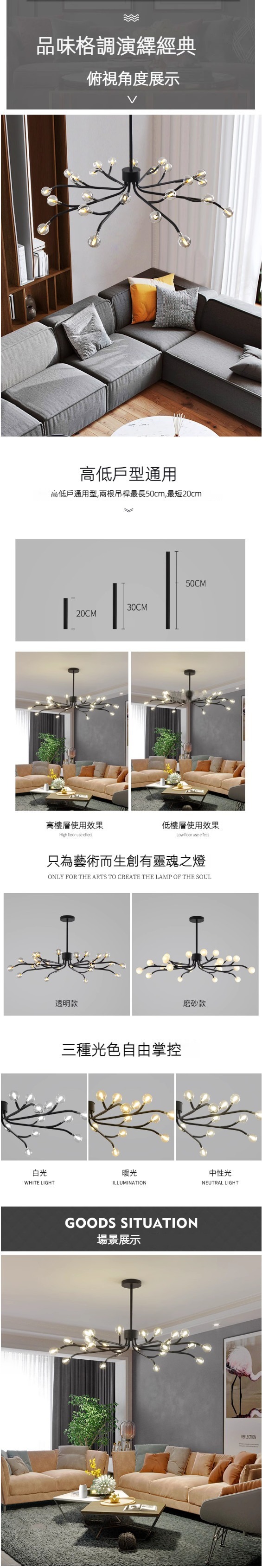 熱賣北歐簡約螢火蟲燈吊燈(黑色燈體)(透明款/15頭/三色變光)