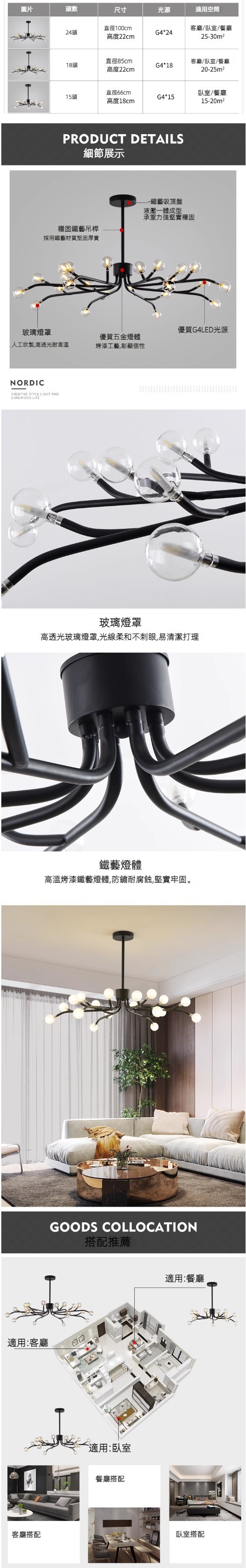 熱賣北歐簡約螢火蟲燈吊燈(黑色燈體)(透明款/24頭/白光)