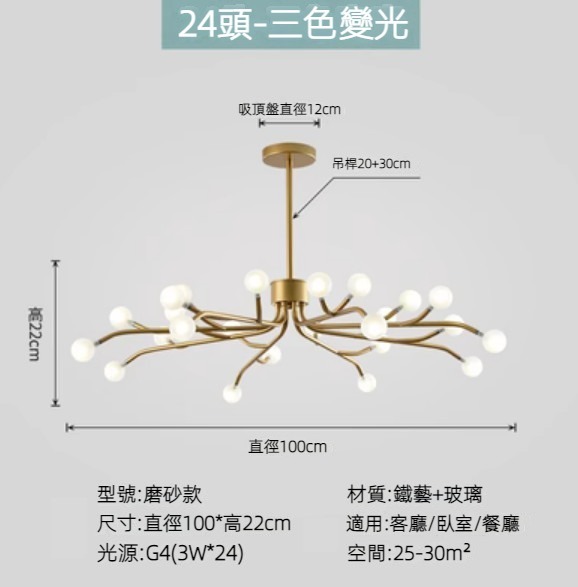 熱賣北歐簡約螢火蟲燈吊燈(金色燈體)(磨砂款/24頭/三色變光)
