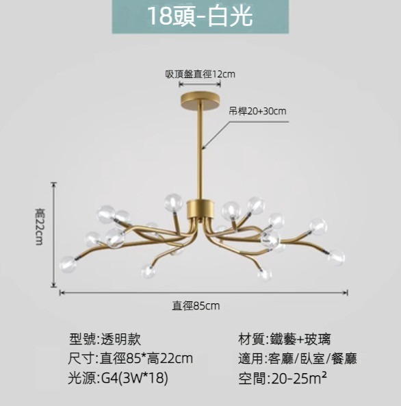 熱賣北歐簡約螢火蟲燈吊燈(金色燈體)(透明款/18頭/白光)