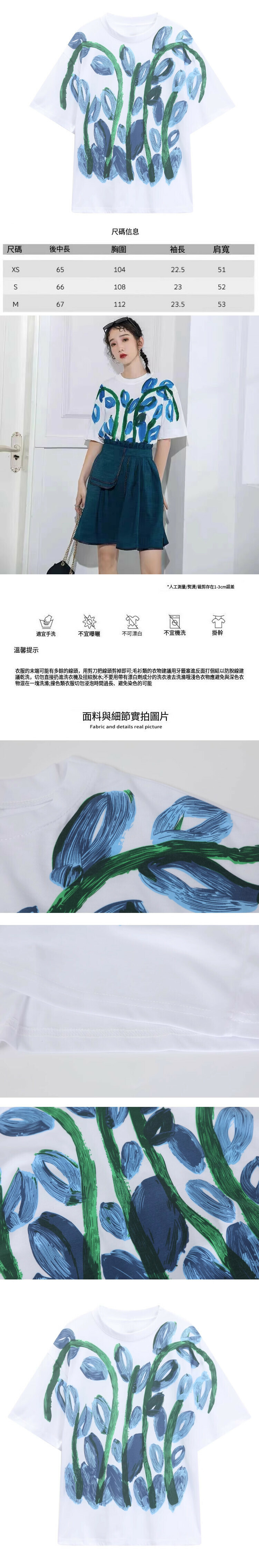熱賣油畫藍花短袖T恤(白色)(XS-M碼)(下單後聯絡客服確認發貨尺碼)