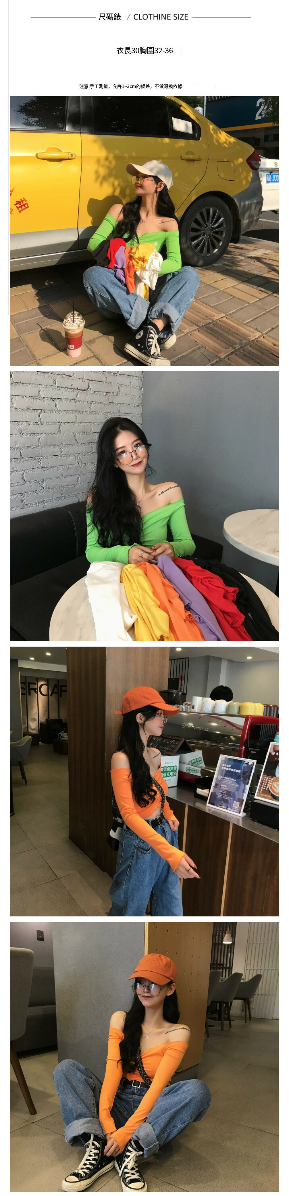 熱賣一字領露肩短款長袖T恤【黑色】【均碼】