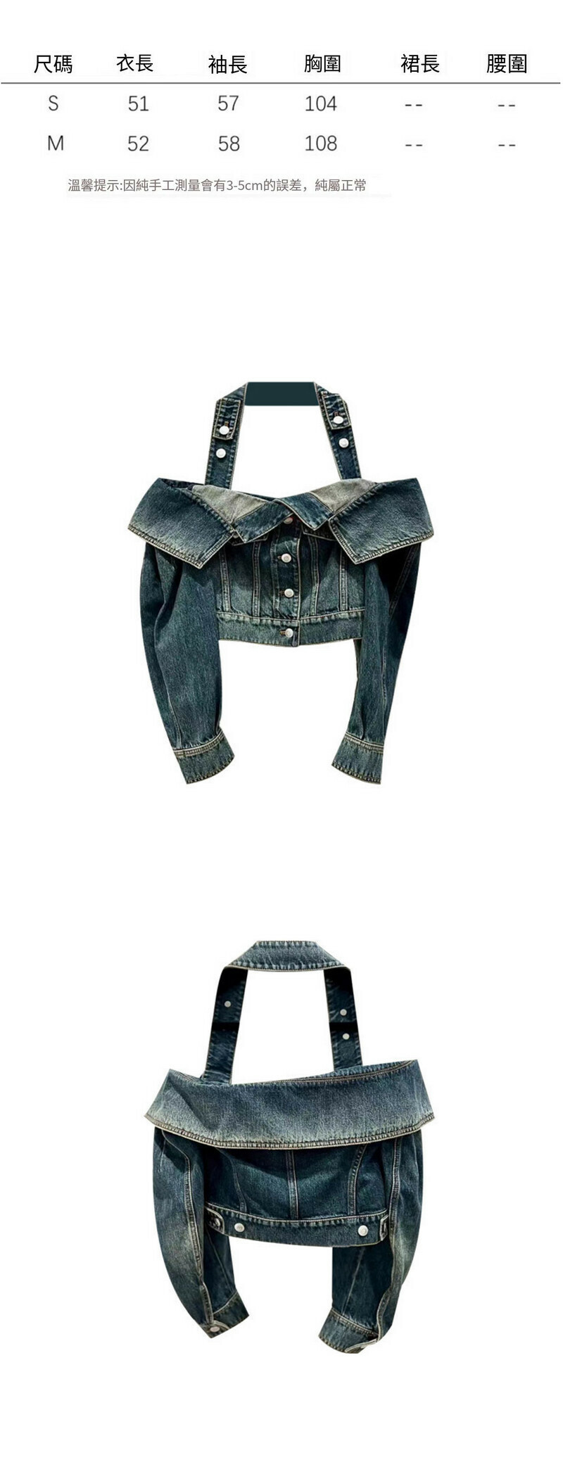 熱賣一字肩掛脖牛仔外套(藍色 S碼-L碼)(下單後請聯絡客服確認發貨尺碼)