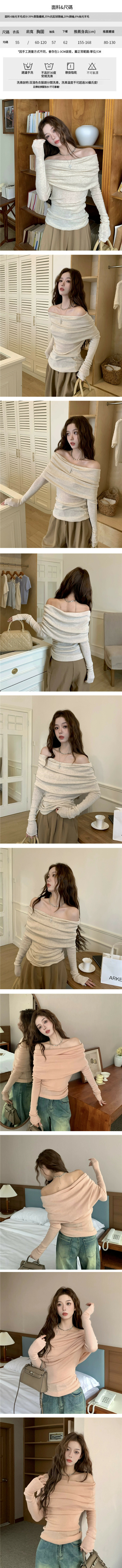 熱賣一字肩長袖針織衫(均碼)(米杏色)