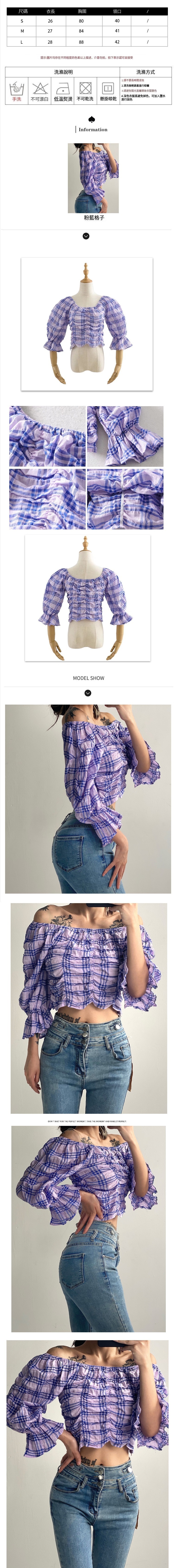 熱賣一字肩格子襯衫(粉藍格)(S-L碼)(下單後聯絡客服確認發貨尺碼)