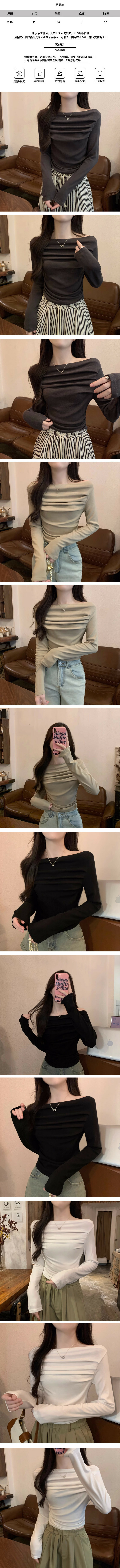 熱賣一字肩褶皺T恤(均碼)(米灰色)