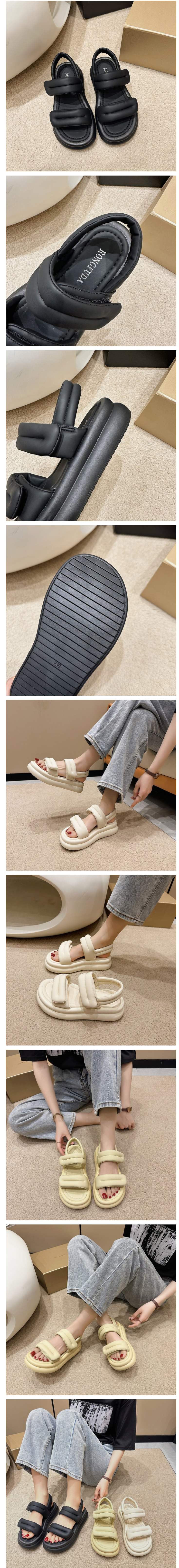 熱賣露趾魔術貼涼鞋(米色/35-40碼)(下單後聯絡客服確認發貨尺碼)