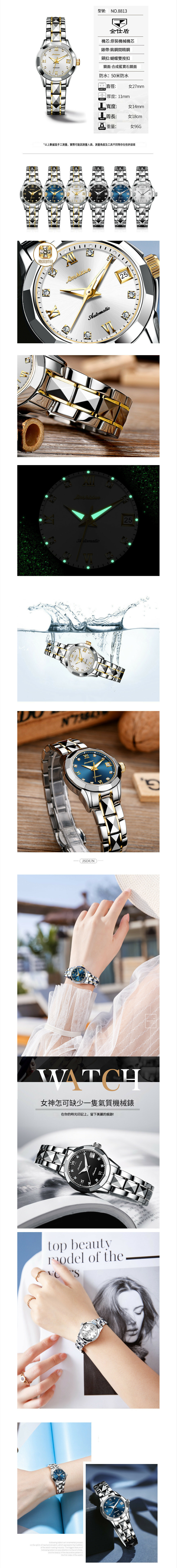 熱賣歐利時全自動機械錶防水女士手錶(鋼帶本白女)