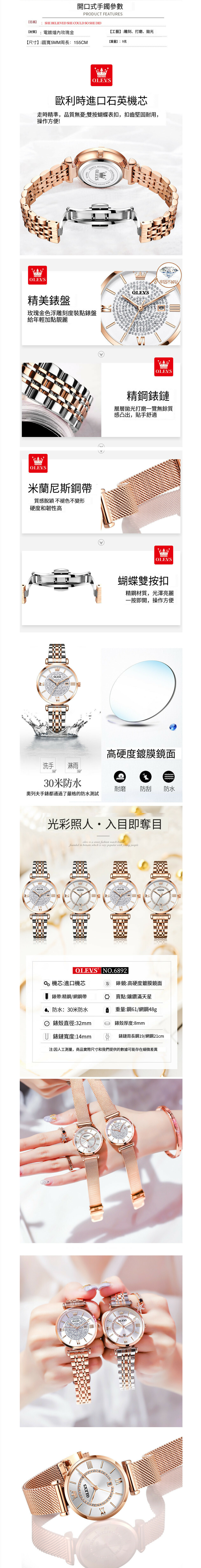熱賣歐利時滿天星女士手錶(網帶玫瑰金鑽面女)