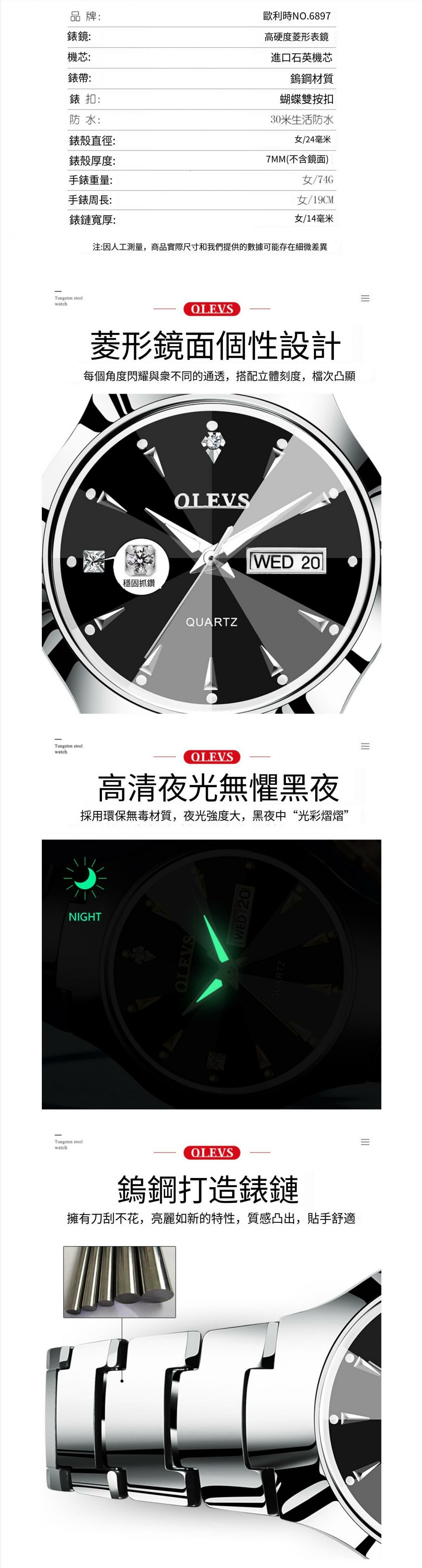 熱賣歐利時鎢鋼石英錶女士手錶(鎢鋼金黃色女)