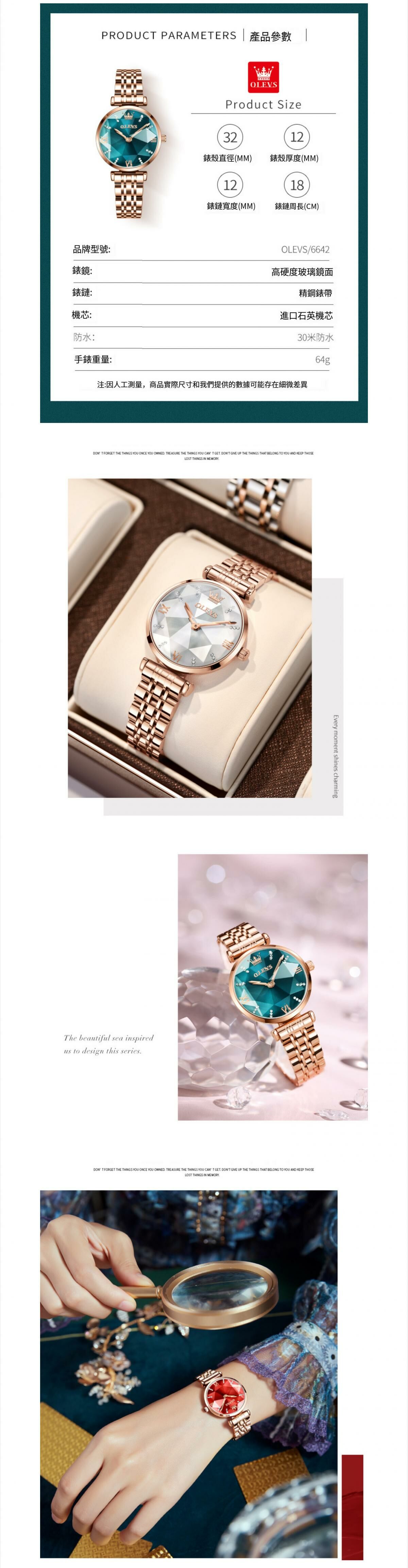 熱賣歐利時防水石英錶女士手錶(鋼帶玫瑰金紅面女)