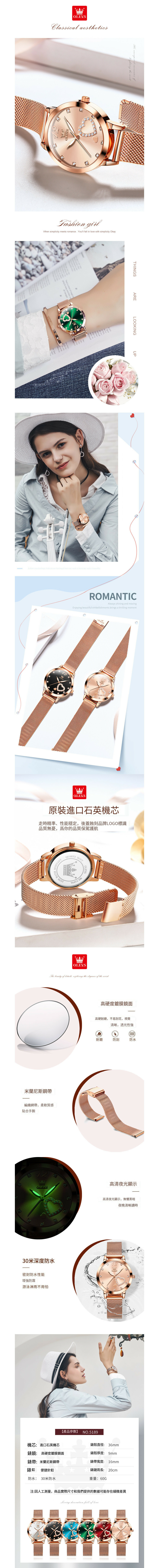 熱賣歐利時防水石英女士手錶(網帶玫殼白麵女)