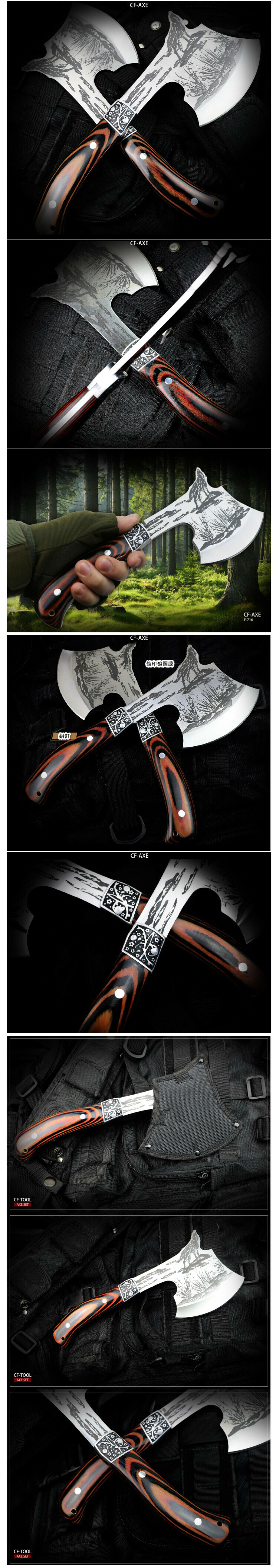 熱賣戶外野營不銹鋼高硬度斧頭(全長275(mm)刃寬115(mm斧頂尺寸80(mm)柄長14cm)